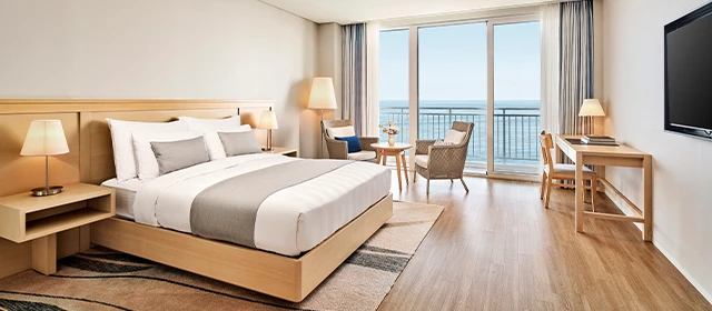 일출이 보이는 오션뷰 디럭스 더블 객실에서