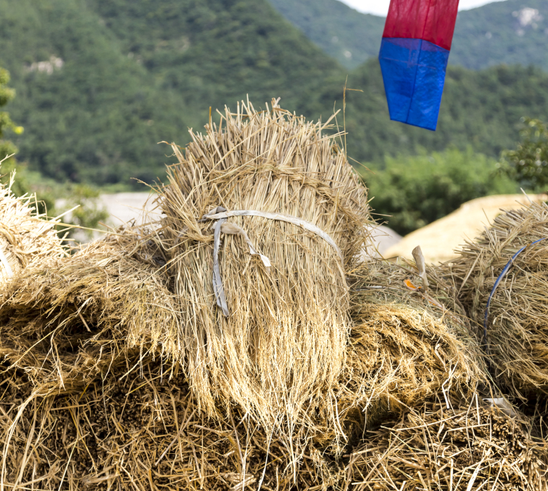 내 손으로 직접 볏짚을 엮어 노란 새 옷을 입혀봐요.