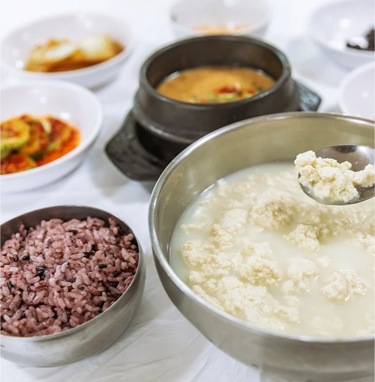 순두부를 주문하면 깍두기, 젓갈, 콩자반, 어묵, 파래초무침, 오이무침 등등 가게에서 직접 만든 밑반찬이 먼저 나온다. 젓가락이 바쁘다. 밑반찬은 평범해서 매력적이다. 메인 요리안 순두부와 된장 비지가 나왔다. ‘송정희 어머니 순두부’의 시그니처 메뉴는 된장 비지다. 황태구이나 순두부를 시켰을 때만 나온다. 된장 비지를 현미밥에 쓱쓱 비벼 한 숟가락 먹었다. 담백한 콩비지의 맛과 된장의 감칠맛이 진하게 전해진다. 몽글몽글한 순두부는 첫맛은 심심하지만 점점 고소한 풍미가 올라온다. 함께 나온 간장을 기호에 맞게 순두부에 넣어 곁들이면 더 좋다. 이곳의 순두부가 특히 맛이 좋은 이유는 연천에서 난 국내산 콩과 깨끗한 동해 바닷물이 만났기 때문이다. 응고제 역할을 하는 바닷물은 미네랄이 풍부해서 콩이 가진 고소한 맛을 더욱 극대화한다. 역시 좋은 음식은 좋은 재료와 정성에서 나온다. 이곳 주방의 가스불은 꺼지는 일이 없다고 한다. 새벽 4시부터 12시간 이상 계속해서 비지를 끓인다. 상온에서 금방 상하는 비지를 오래 보관하는 방법을 연구하던 끝에 탄생한 것이 바로 된장 비지다. 담백한 순두부와 된장 비지를 그릇까지 싹싹 비웠다. 유명한 데는 다 이유가 있다. 속초에서 설악산을 올랐다면, 결국 남은 길은 하나다. 순두부로 향하는 길.