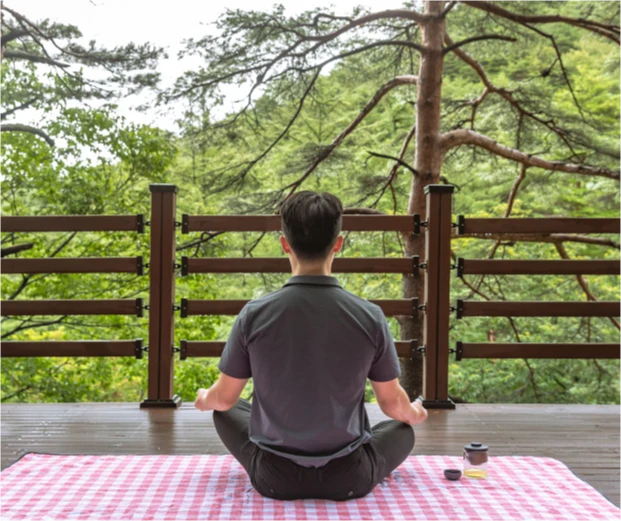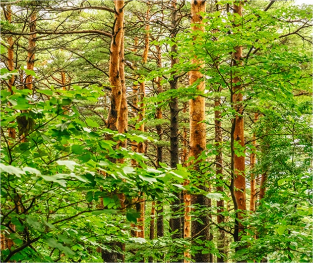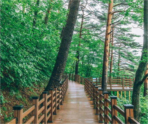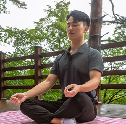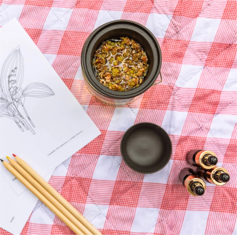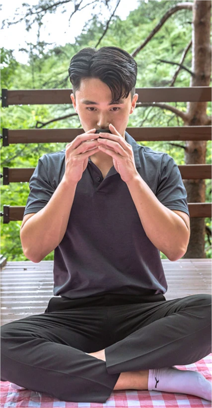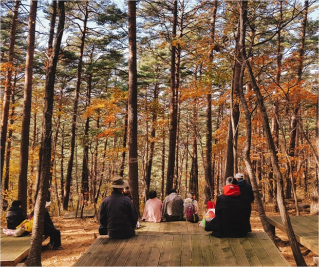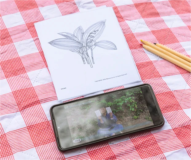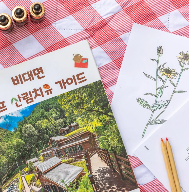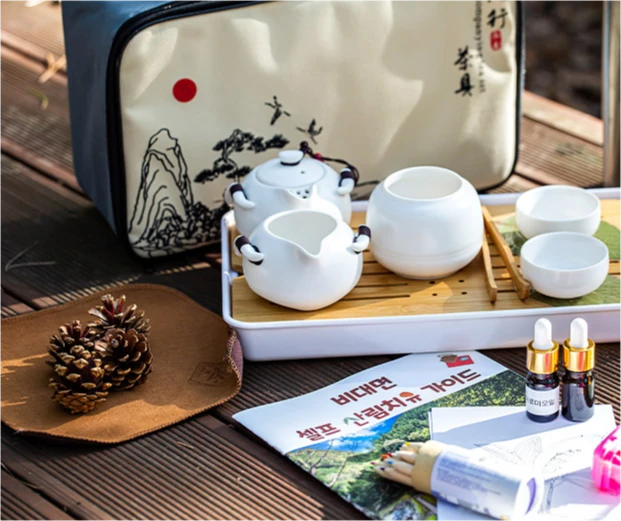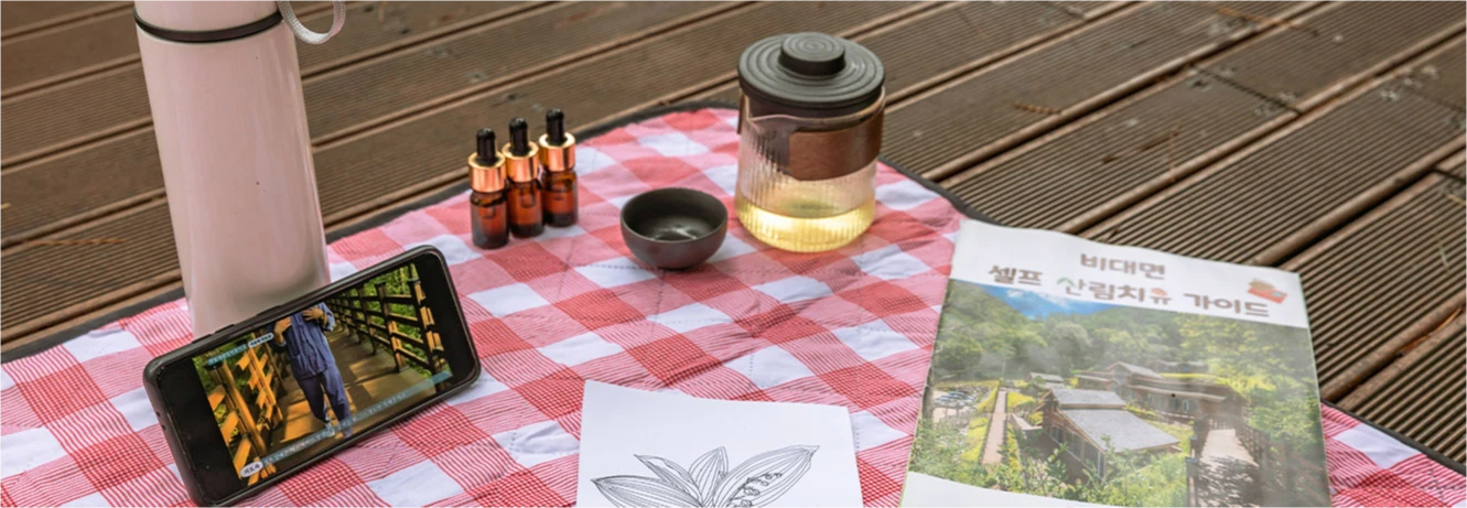 <내 마음의 솔향기> 프로그램 참가자는 ‘돗자리, 보온병, 생강나무 꽃차, 찻잔, 아로마 오일, 엽서, 색연필, 가이드북’ 등이 담긴 가방을 제공받는다. 숲 어디든지 돗자리를 펴고 명상을 즐길 수 있다. 공식적인 체험 시간은 2시간이지만 사색의 시간이 마음에 든다면 얼마든지 더 머물러도 좋다. 대관령 치유의 숲 안내센터에서 멀지 않은 곳에 돗자리를 펴고 자리를 잡았다. 유리 티포트에 생강나무 꽃을 넣고 뜨거운 물을 부었다. 금세 은은한 향이 가득 번진다. 강릉시 성산면 어흘리 주민이 직접 재배한 생강나무 꽃으로 만든 차다. 4월 초, 진달래보다 먼저 핀 생강나무 꽃을 물에 씻어 증기에 찐 뒤 은은한 불에 최소 4회 이상 덖어서 그 향이 더욱 풍성하다. 따듯한 차를 입에 머금고 있으면 콧속으로 꽃 향기가 스며든다. 스마트폰을 이용해 영상 시청을 시작했다. 금강송 감각걷기, 바르게 걷기, 대관령 삼총사, 차담, 피톤치드 호흡 등등 총 7가지 QR코드를 통해 ‘산림치유지도사’의 짧은 강의를 수강할 수 있다.